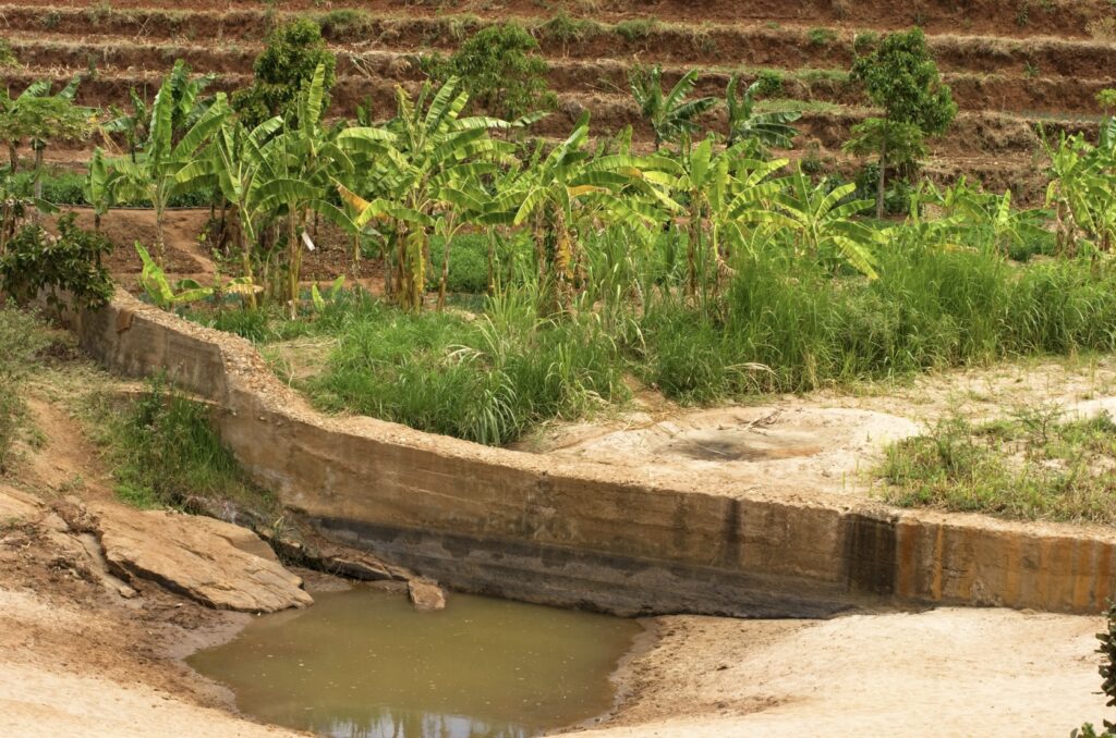 A sand dam in Kenya that supplies scarce water year round to a banana plantation
